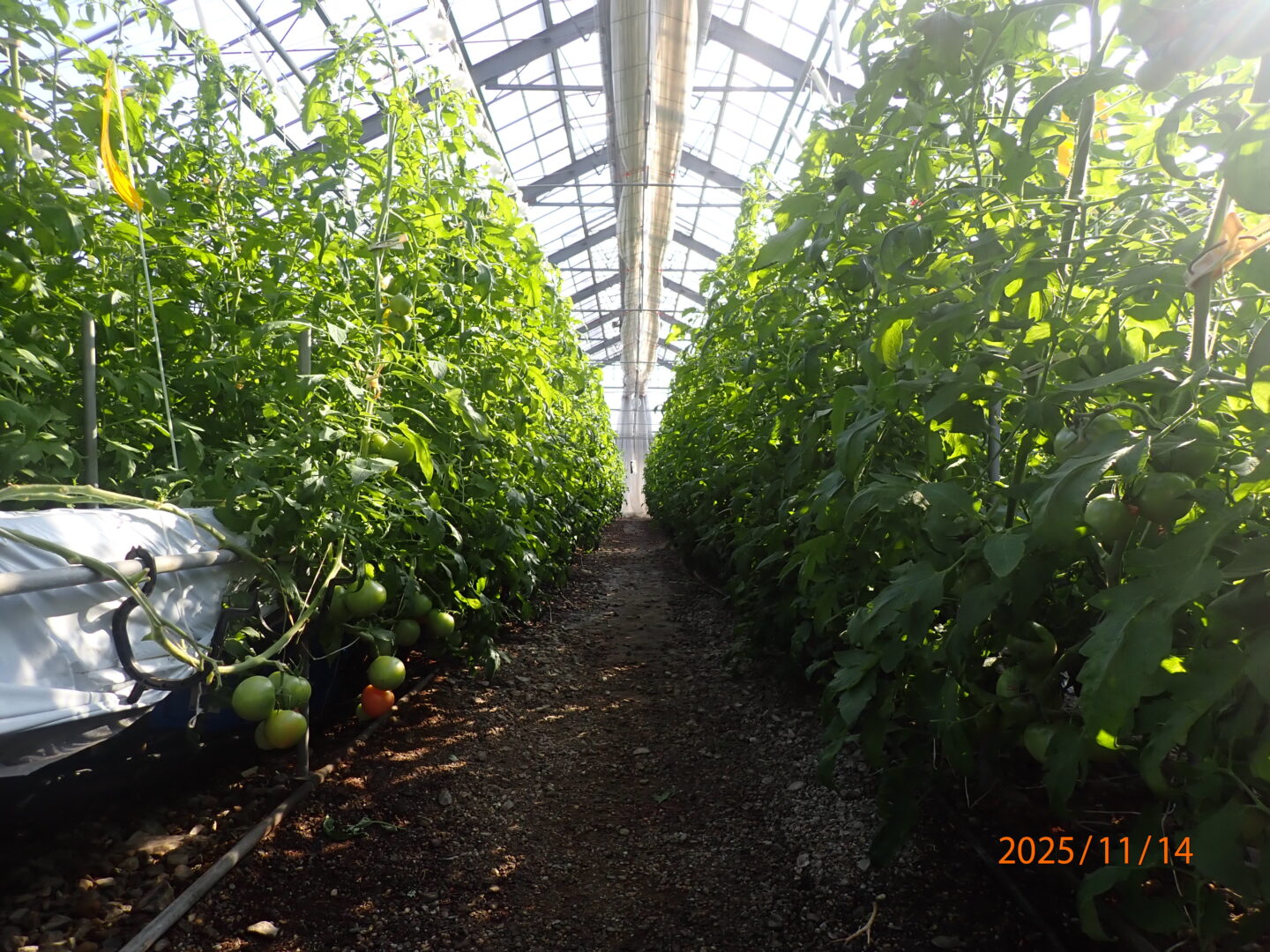 9月1日に大玉トマトを定植して、現在は2段目の果実収穫が始まり、7段目の花が咲いています。大きなトラブルもなく、順調に生育しています。